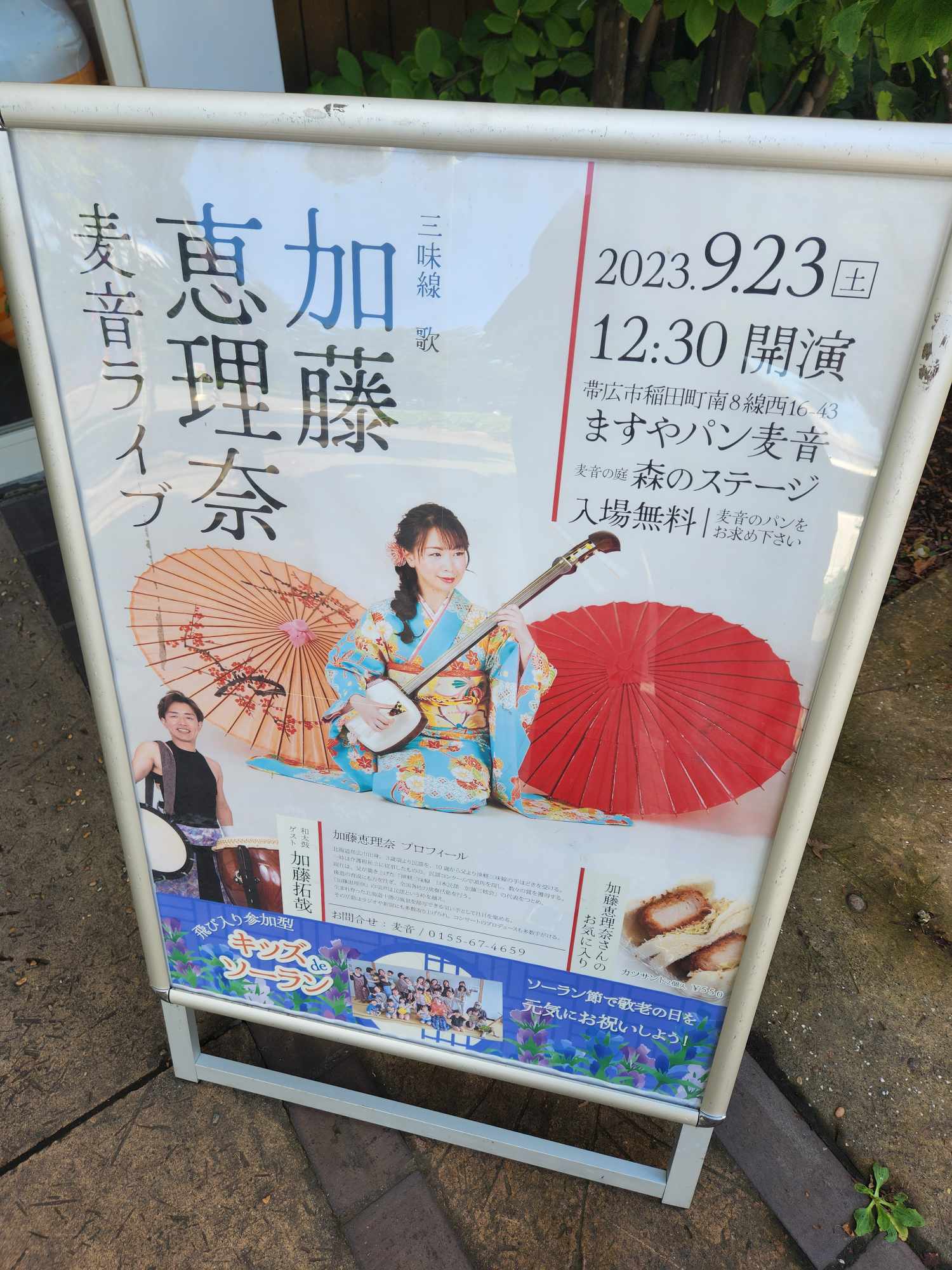 9月23日(土)12時半より、麦音の庭「森のステージ」にて、加藤恵理奈さんによる麦音ライブが行われます♪