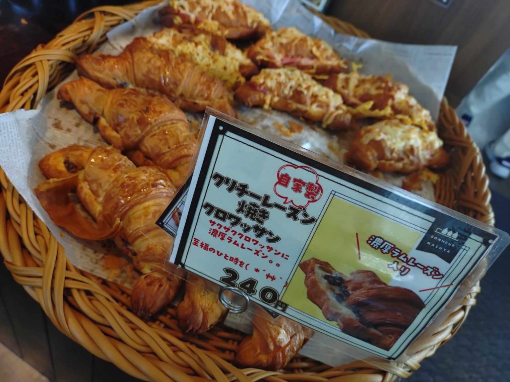 他にも、シュークリームみたいなスイーツ系デニッシュの「シューデニッシュ 安納芋(200円)」、濃厚ラムレーズン入りの「クリチーレーズン焼きクロワッサン(240円)」もおススメです!