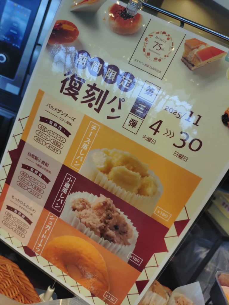 11月30日(日)まで、ますやパン各店では「復刻パン第3弾」企画を開催中です