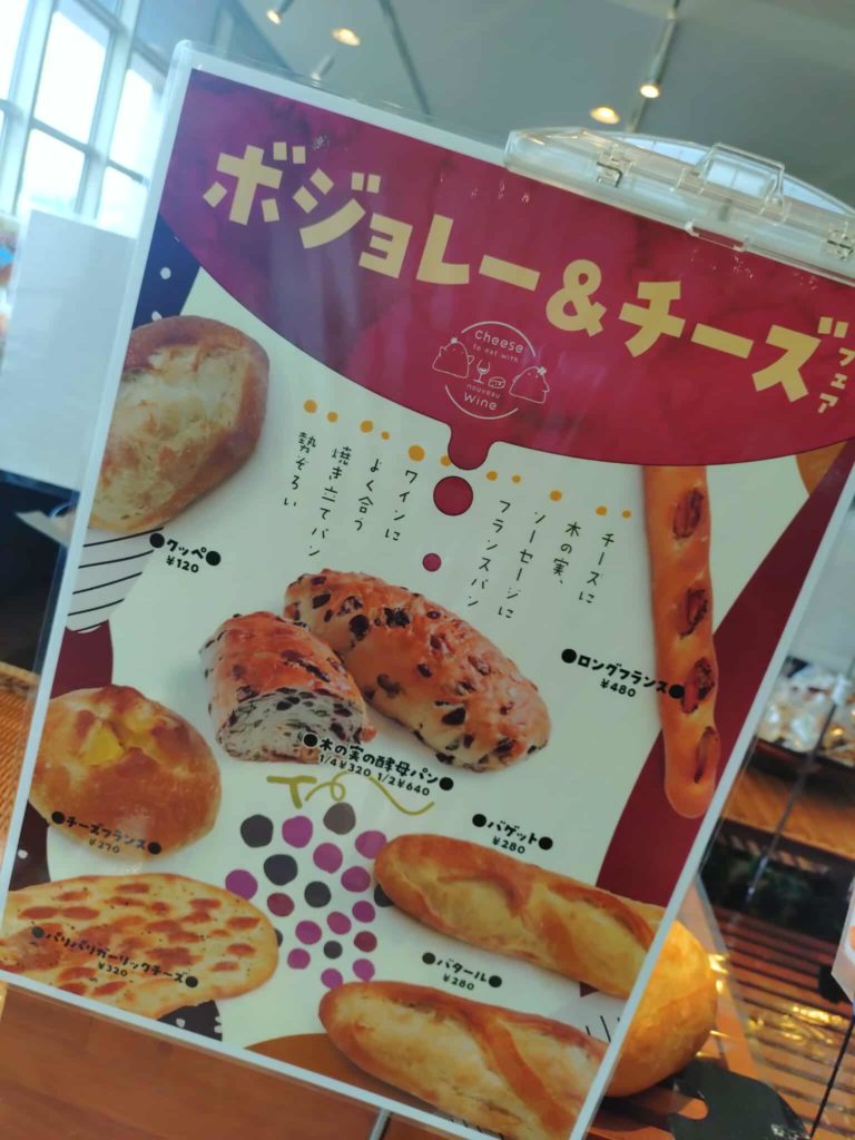 ボヌール店では「ボジョレー&チーズフェア」として、ボジョレーとの相性抜群のパンをご提案しています。