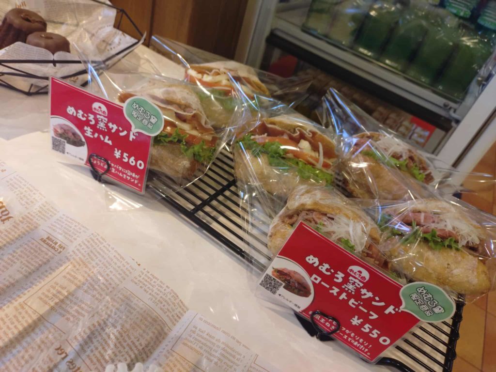 めむろ窯はお店限定の商品がたくさんありますが、今回の中継のおススメは「めむろ窯サンド 生ハム(560円)」と「めむろ窯サンド ローストビーフ(550円)」です^^
