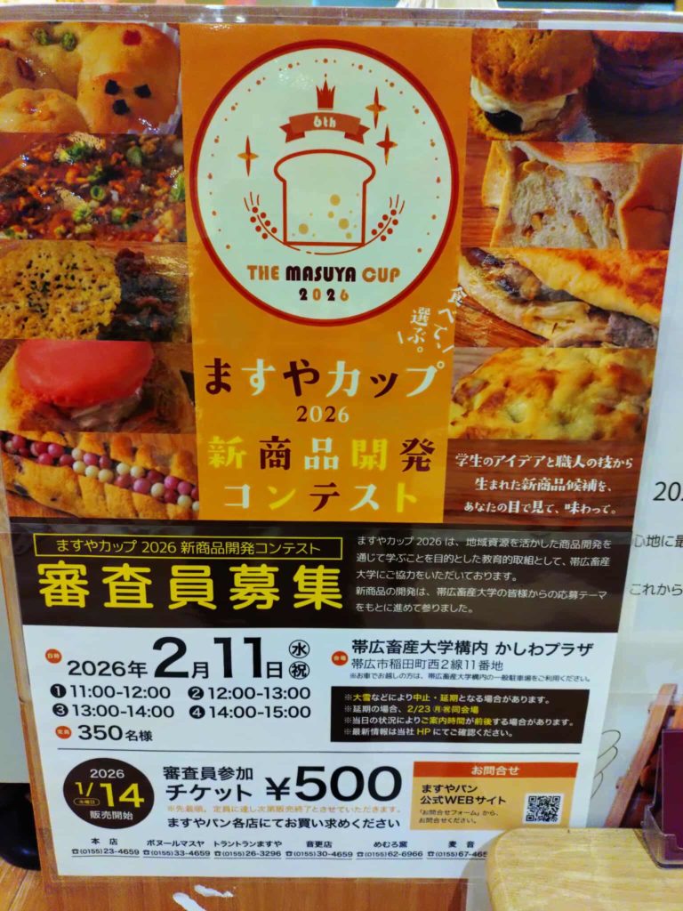 2月11日(水祝)に帯広畜産大学構内かしわプラザにて、3年に1度の「ますやカップ2026 新商品開発コンテスト」開催