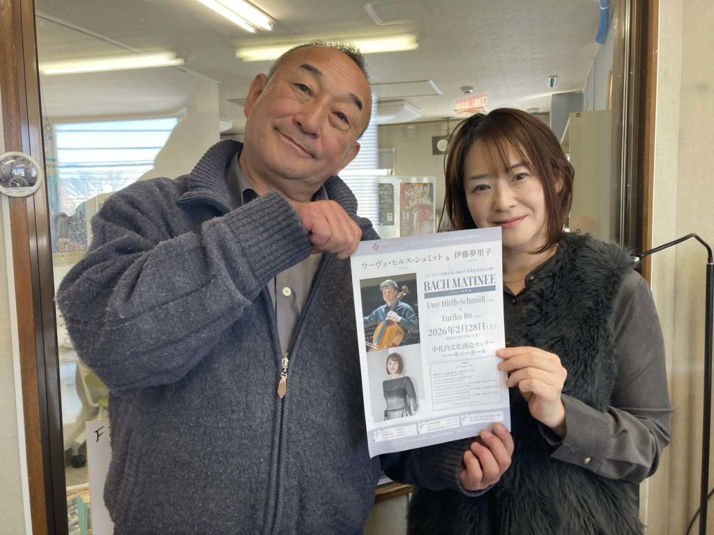 2月28日(土)13時半開場&14時開演、中札内文化創造センターのハーモニーホールにて「BACH MATINEE(バッハ マチネ)」という、チェロとピアノのコンサートが行われます。