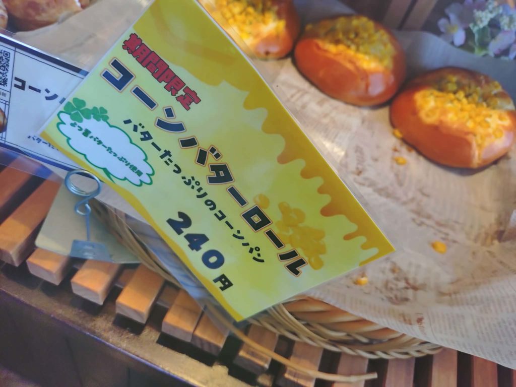 今日は期間限定商品の「シュガーバターパン(200円)」「コーンバターロール(240円)」「いちごとホイップのシューデニッシュ(210円)」をご紹介