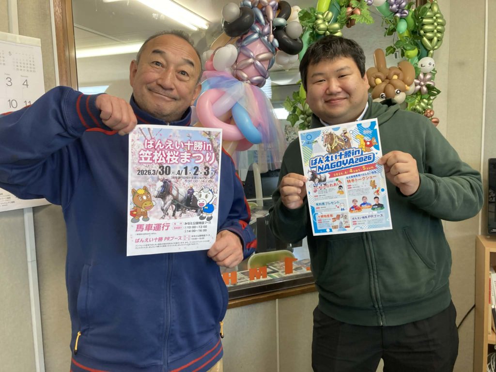 ハクウンリュー号とのふれあい・十勝物産展・名古屋競馬場×ばんえい競馬の騎手トークショーなど行われるので、名古屋にお住いの方は足をお運びください♬